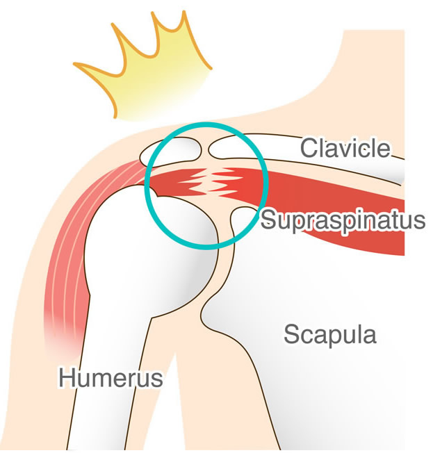 4 group of muscles that stabilize the shoulder joint and contribute for proper functioning of shoulder are together termed as rotator cuff. They are named supraspinatus, infraspinatus, subscapularis and teres minor. When any of the muscle or tendon gets irritated, damaged or torn leads to pain and restriction of movements of shoulder joint.